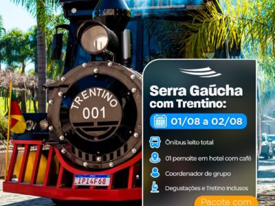 2 DIASVindima Bento Gonçalves (RS) A partir de R$ Saída: 24/01/2026 Retorno: 25/01/2026 Reserve agora